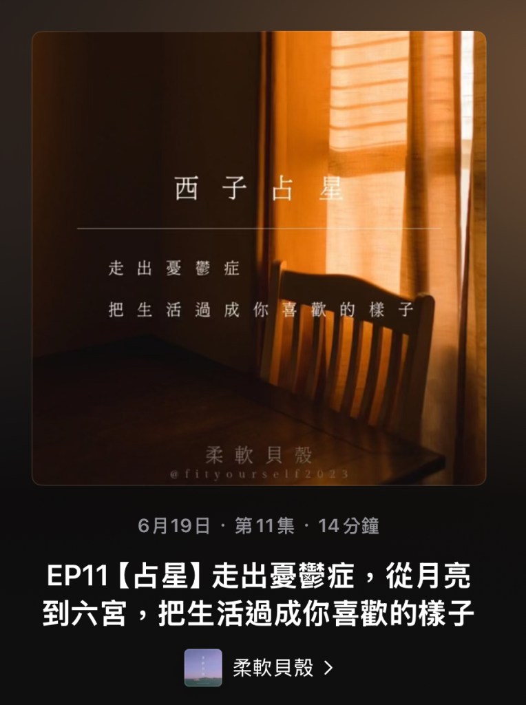 本篇文章為柔軟貝殼🎙EP11【占星】走出憂鬱症,從月亮到六宮,把生活過成喜歡的樣子的文字整理。